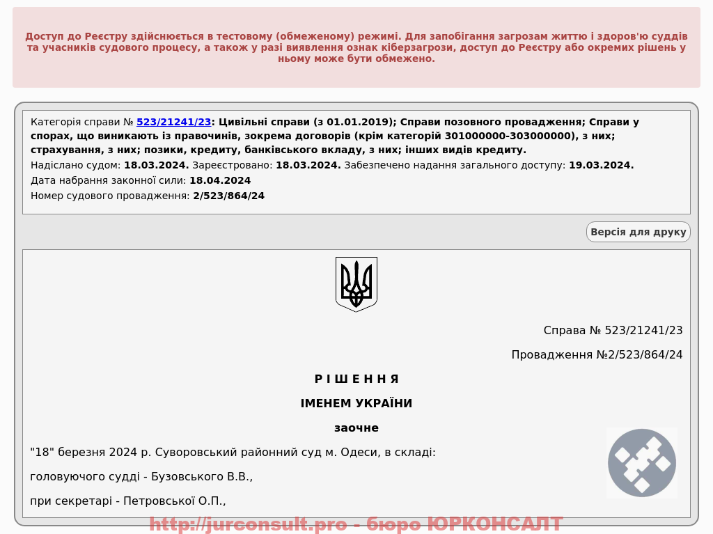 Натисніть на зображення, щоб перейти до Єдиного реєстру судових рішень: