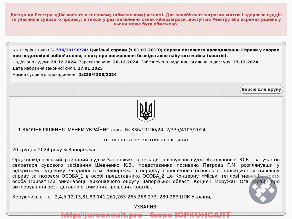 Домоглися стягнення понад 20 тисяч гривень з Концерну «Міські теплові мережі». Забезпечили повернення всієї суми клієнту через суд!