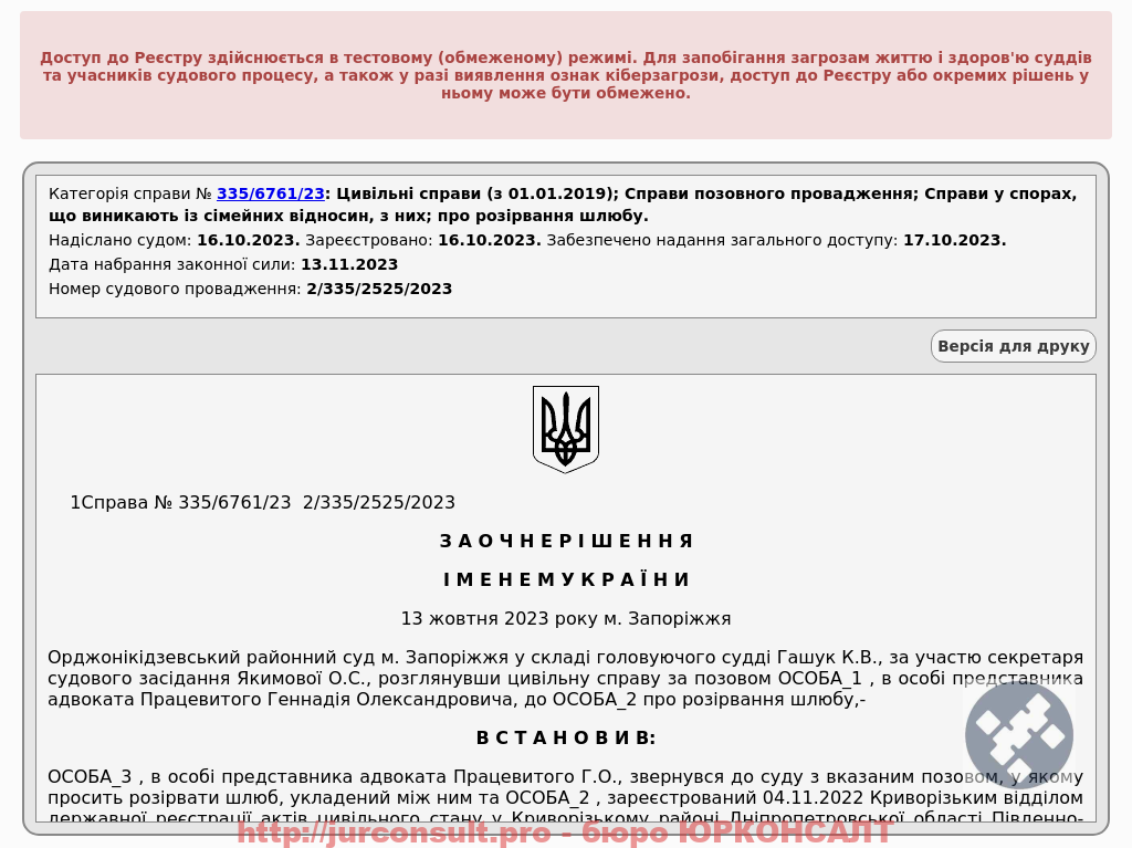 Розірвали шлюб через суд за відсутності сторін. Клієнту не довелося особисто брати участь у розгляді.