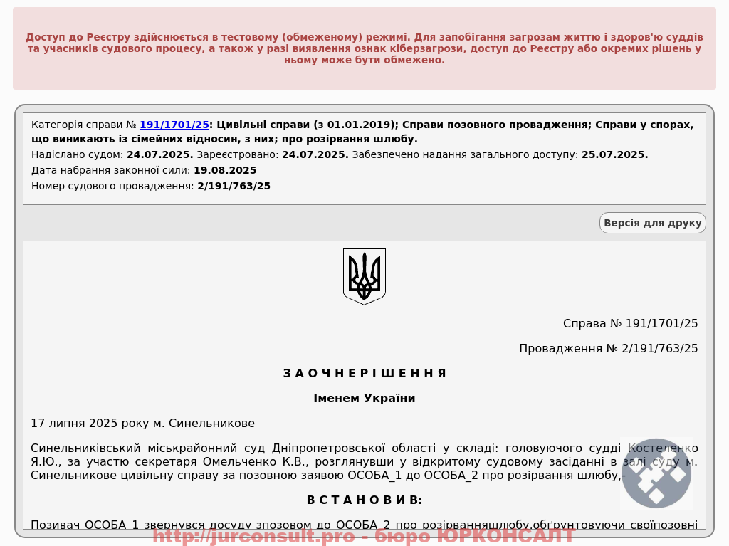 Розірвали шлюб у суді без присутності клієнта, навіть за наявності дитини.