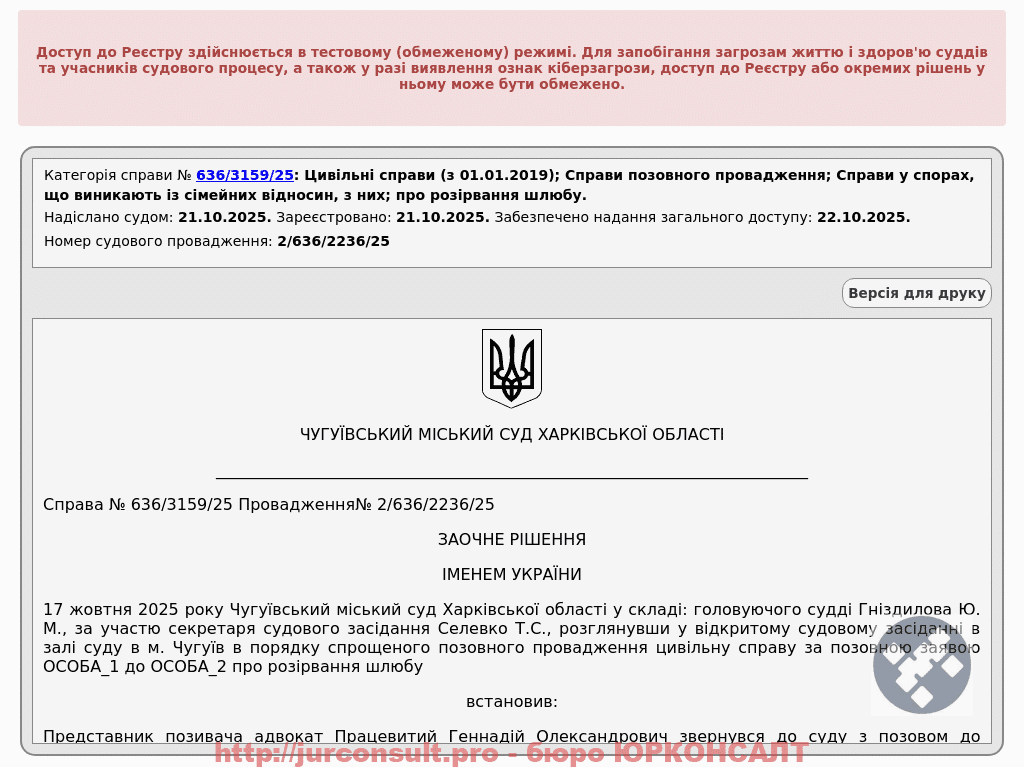 Добилися розірвання шлюбу без участі клієнта у суді. Клієнту не довелося ходити до суду — все зробили ми!