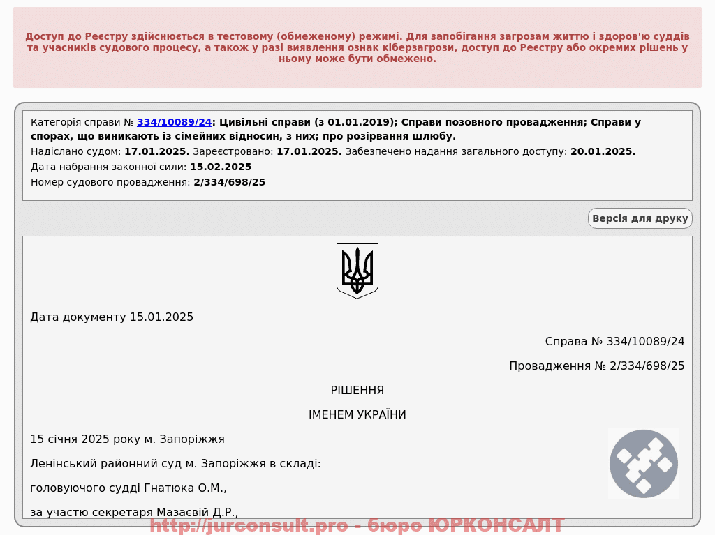 Домоглися розірвання шлюбу в суді без участі клієнта та відповідача. Клієнт отримав свободу та можливість почати нове життя!