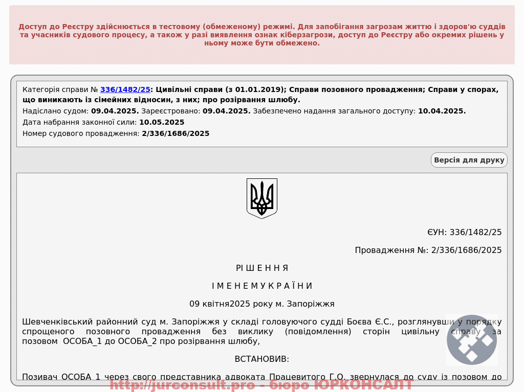Домоглися розірвання шлюбу клієнта без необхідності особистої участі в суді, навіть при наявності дітей.