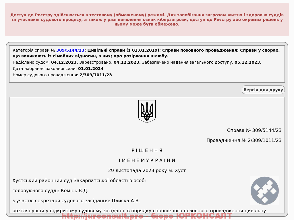 Домоглися розірвання шлюбу без присутності обох сторін у суді. Супроводили справу до успішного рішення!