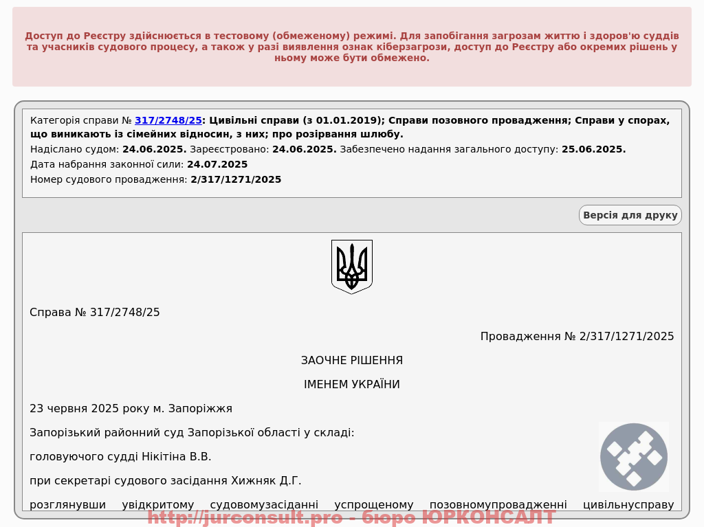 Розірвали шлюб без участі сторінВід Адвокат Київ | Запоріжжя | Україна / 25.06.2025 Категорія: Розірвання шлюбу