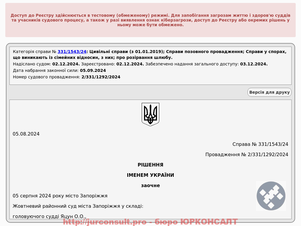 Домоглися розірвання шлюбу без участі клієнта в суді, навіть з наявністю двох дітей.