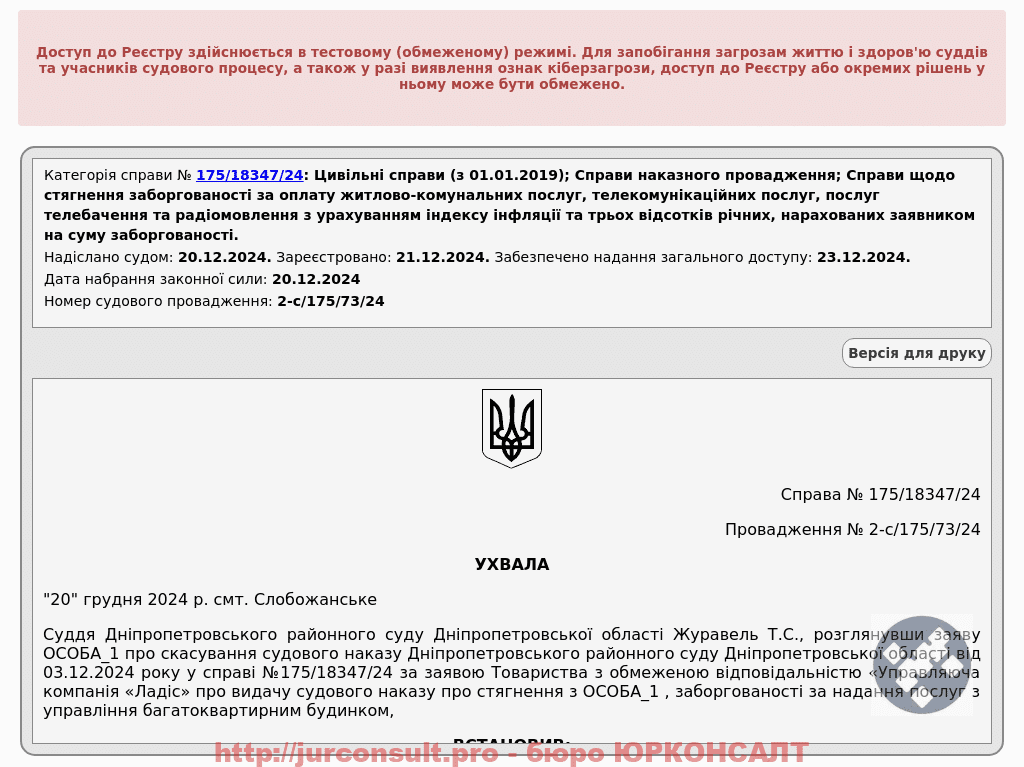 • Дата рішення: 20.12.2024