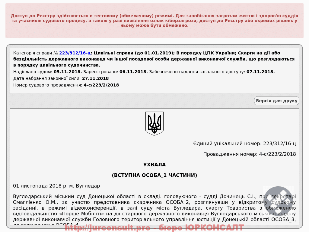 Домоглися визнання дій виконавця неправомірними! Скасували відкриття виконавчого провадження на користь клієнта.