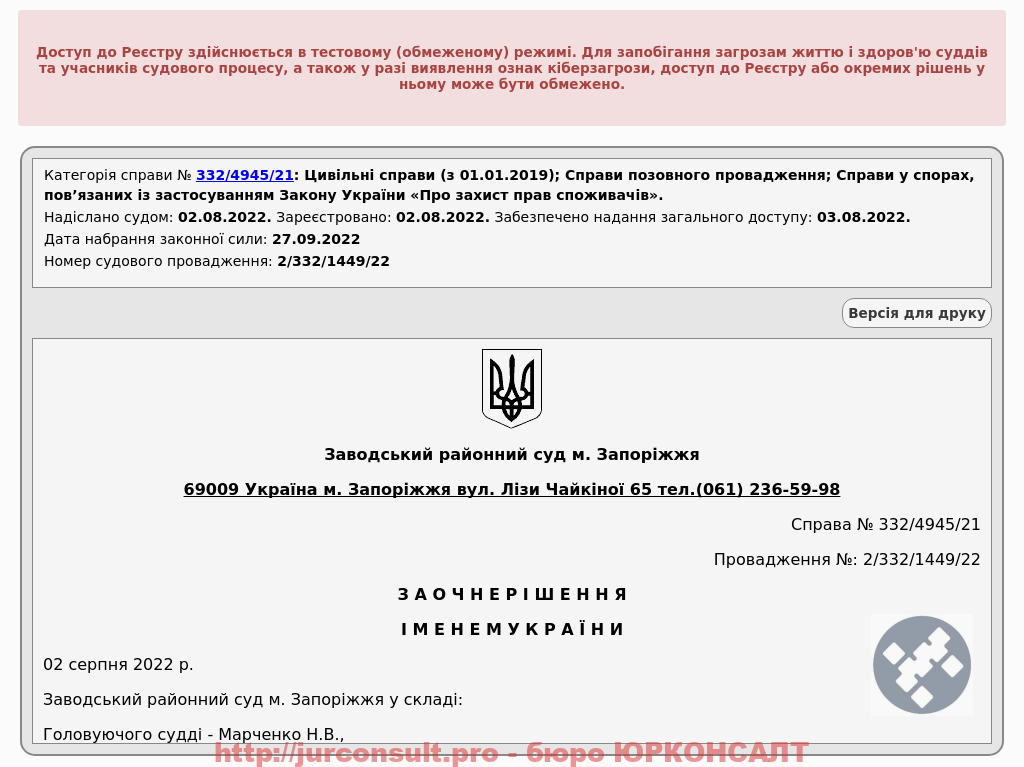 Оскаржили виконавчий напис щодо кредиту від Банку Форвард та домоглися його скасування! Повернули клієнту сплачені витрати на суд і адвоката.