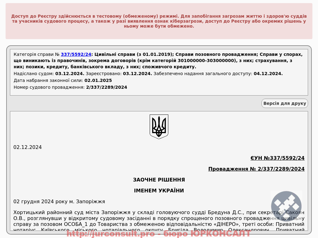 Клієнт звернувся через стягнення боргу за кредитом Dinero, виданим без нотаріального посвідчення.