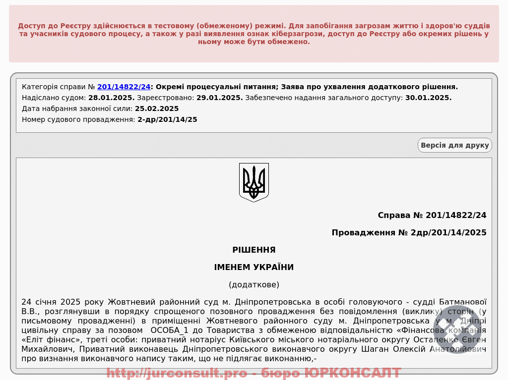 Визнали виконавчий напис «Еліт Фінанс» недійсним та стягнули компенсацію за адвоката.