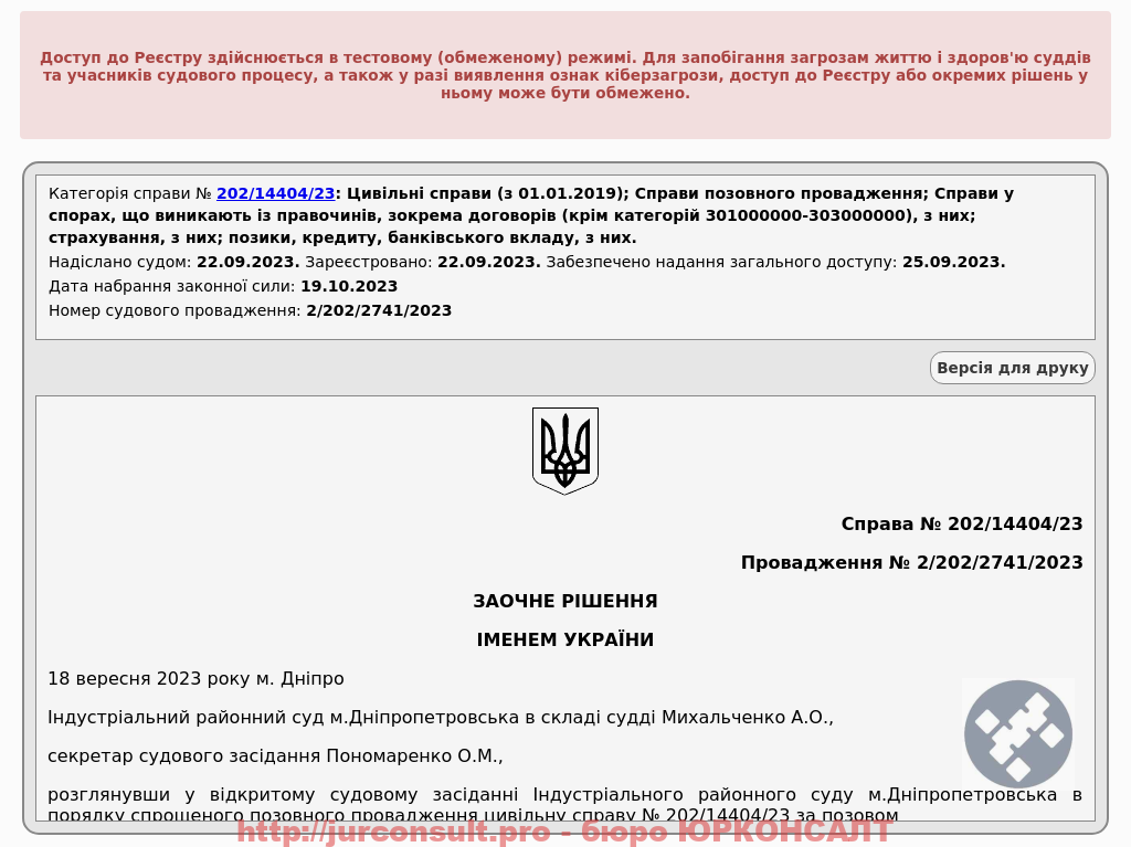 Добилися скасування виконавчого напису нотаріуса на 14 тис. грн! Кредитору з ФК "Довіра та Гарантія" відмовлено у стягненні боргу.