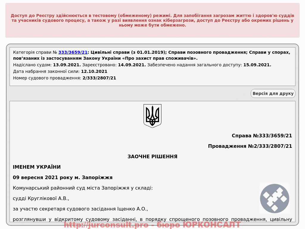 Домоглися скасування виконавчого напису нотаріуса на стягнення майже 36 тис. грн на користь ФК СІТІ ФІНАНС. Повернули клієнту спокій та фінансову безпеку!