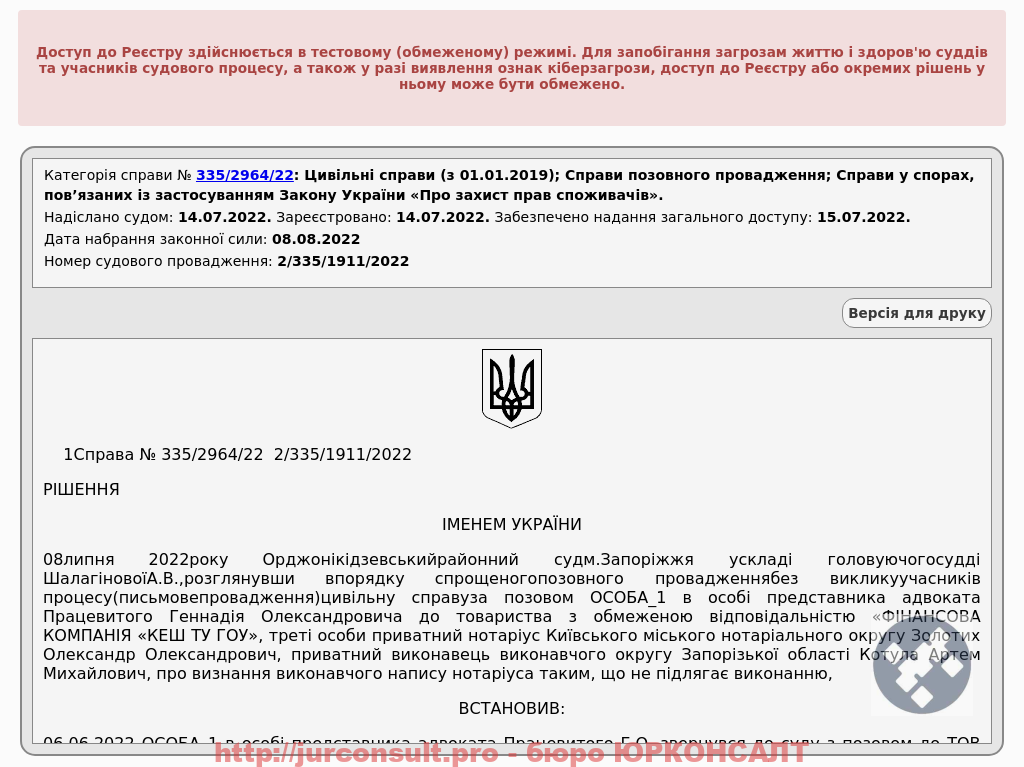 Добилися скасування виконавчого напису на 16 000 грн від фінкомпанії Кеш ту гоу. Захистили клієнта від незаконного стягнення та арештів доходів!