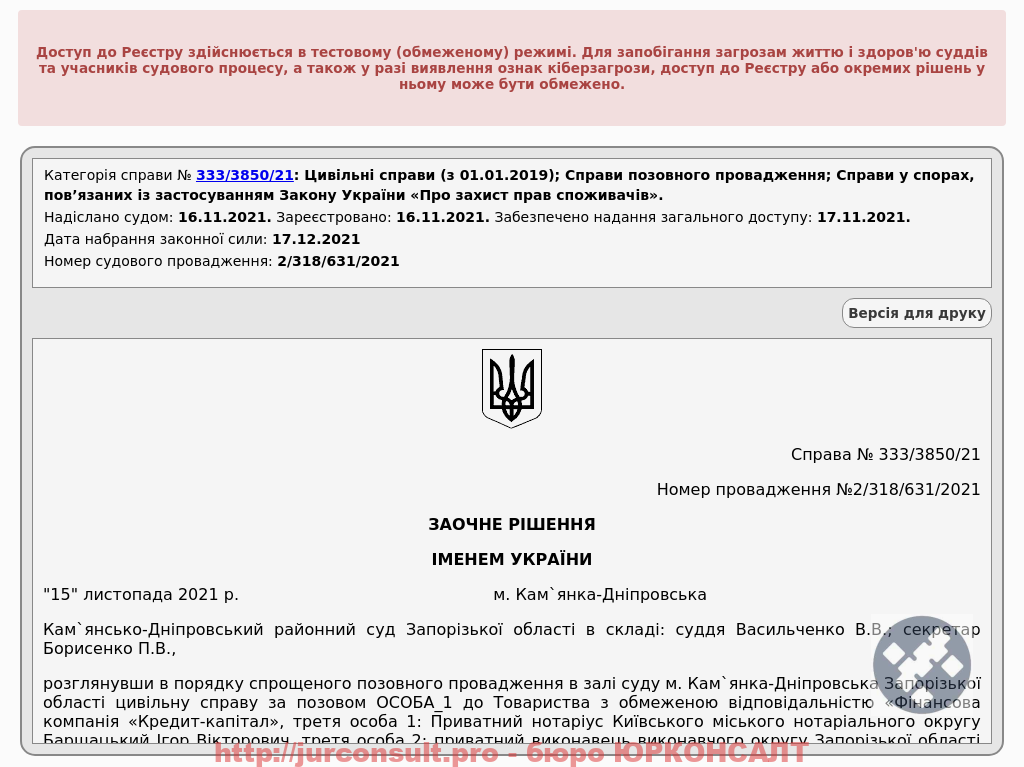 Скасували виконавчий напис Кредит-КапіталВід Адвокат Київ | Запоріжжя | Україна / 17.11.2021 Категорія: Суд по Кредиту Натисніть на зображення, щоб перейти до Єдиного реєстру судових рішень: