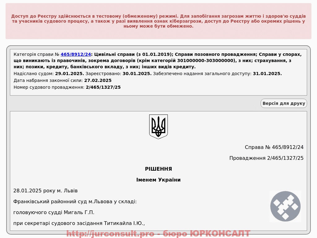 Клієнт звернувся, щоб скасувати виконавчий напис про стягнення кредитної заборгованості з боку фінансової компанії.