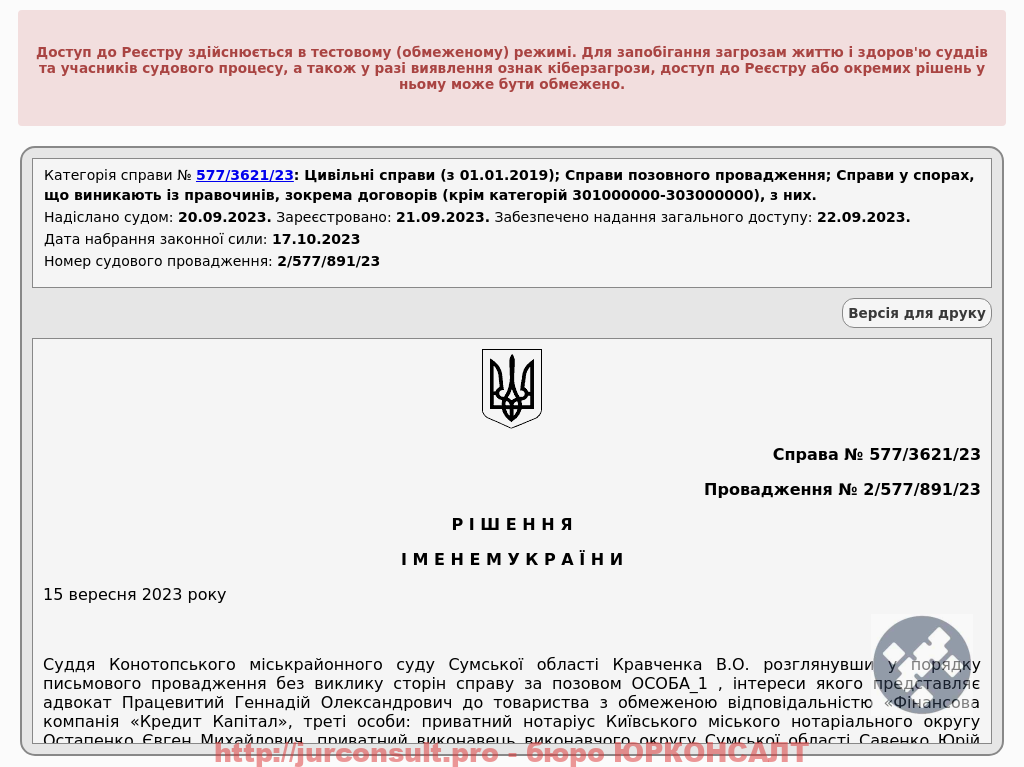 Клієнт звернувся для скасування виконавчого напису нотаріуса про стягнення майже 11 000 грн на користь ТОВ 'ФК Кредит Капітал'.