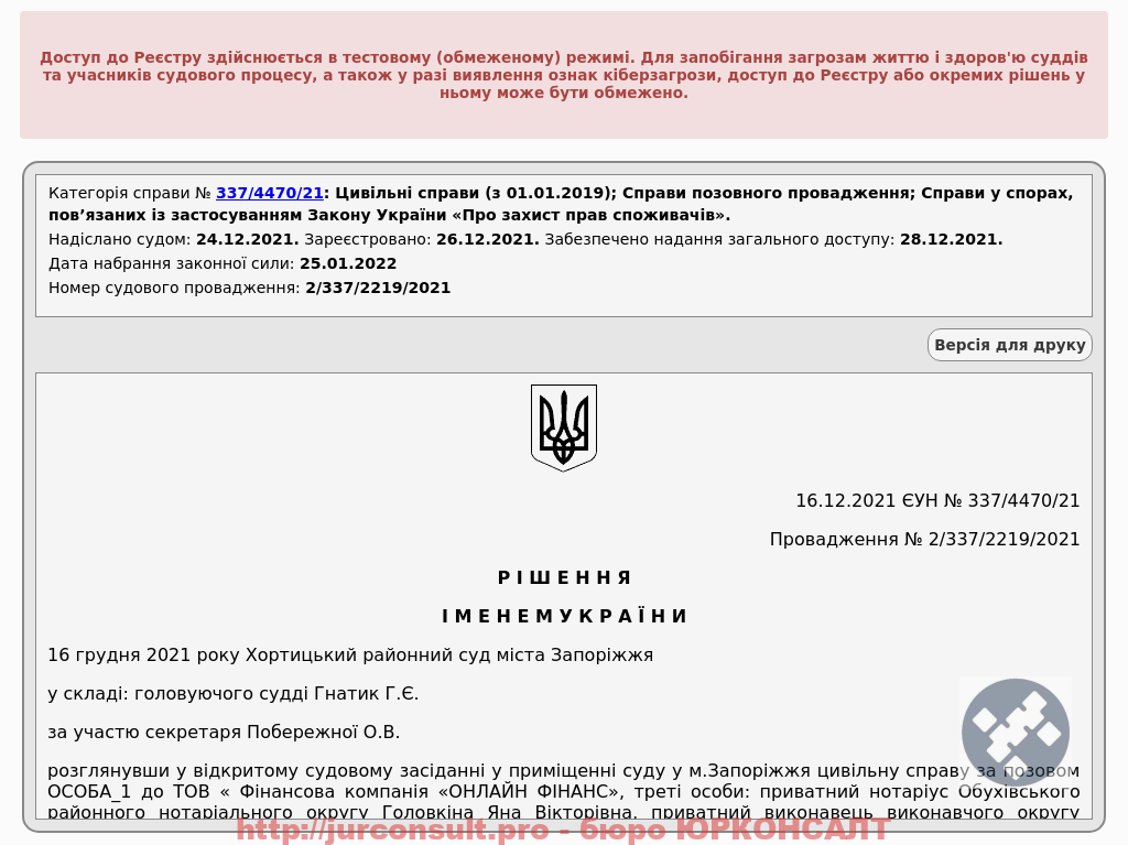 Скасували виконавчий напис ТОВ "ФК ОНЛАЙН ФІНАНС" на 20 тисяч гривень! Витрати клієнта на юрконсультацію та судовий збір компенсував кредитор.