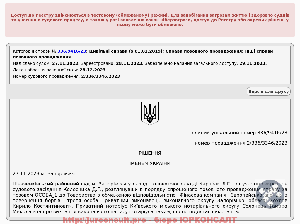 Скасували виконавчий напис нотаріуса за позовом ЄАПБ. Захистили клієнта від стягнення боргу за кредитом на 21 000 грн!