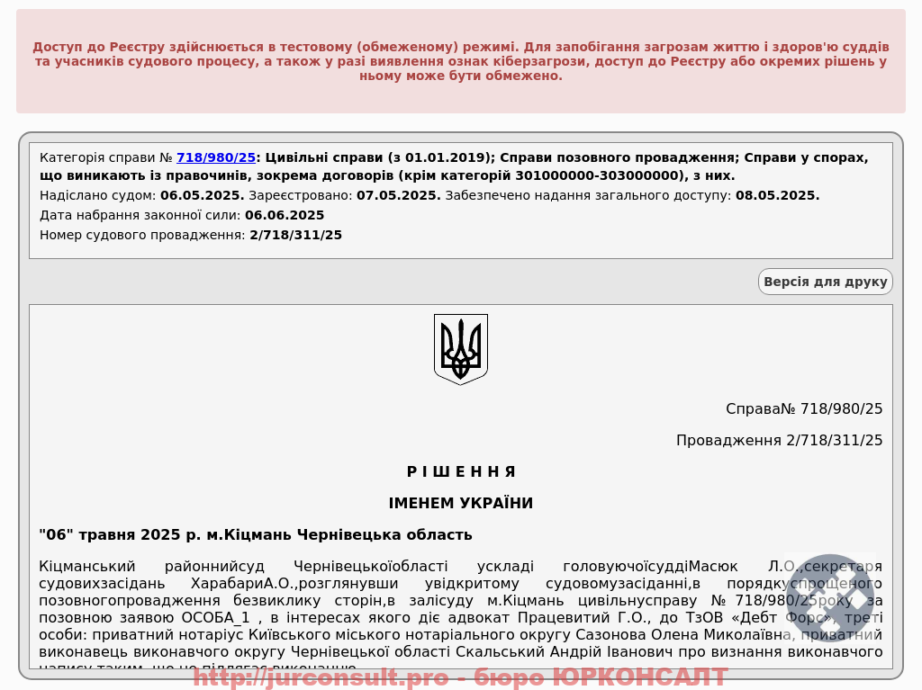 Домоглись скасування виконавчого напису ТзОВ «Дебт Форс» на 359 000 грн! Повернули клієнту спокій та захистили від несправедливого стягнення.