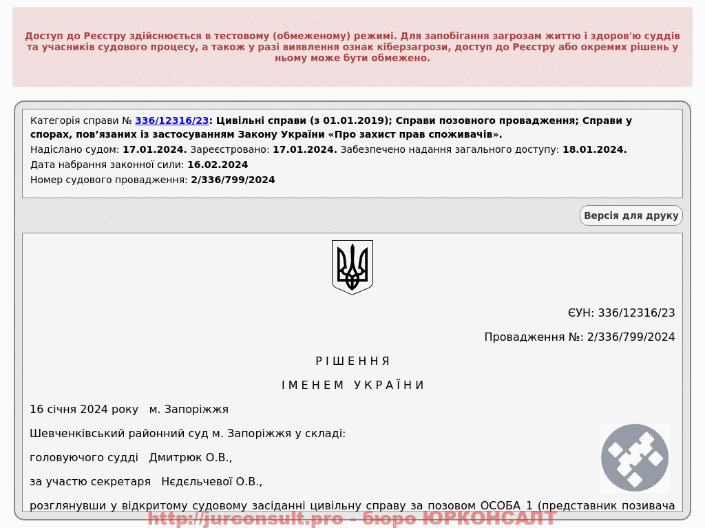 Натисніть на зображення, щоб перейти до Єдиного реєстру судових рішень: