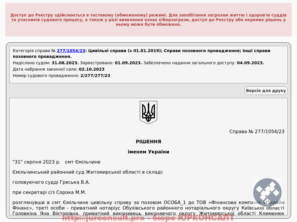 Клієнт оскаржував виконавчий напис нотаріуса щодо стягнення кредитної заборгованості у 27 475 грн на користь ТОВ 'ФК Онлайн Фінанс'.