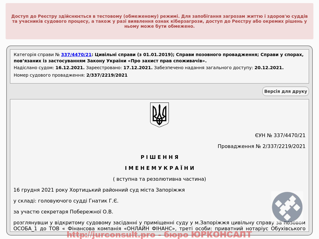 Визнали виконавчий напис від ФК «ОНЛАЙН ФІНАНС» недійсним та повернули клієнту судові витрати!