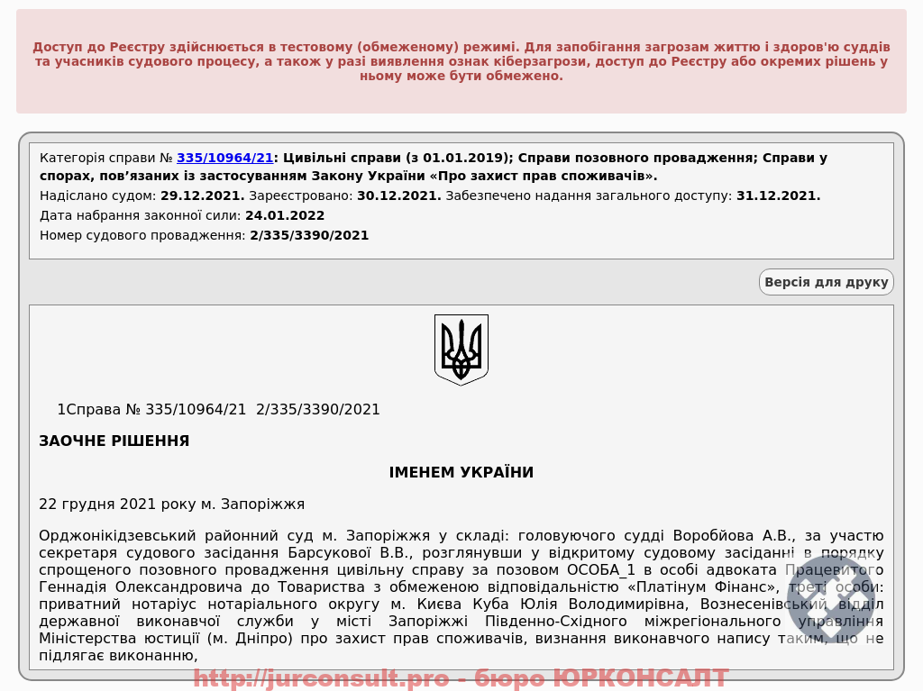 Скасували виконавчий напис від Платінум Фінанс на 21 000 грн та повернули клієнту майже 5 000 грн. Захистили клієнта від незаконного стягнення боргу!
