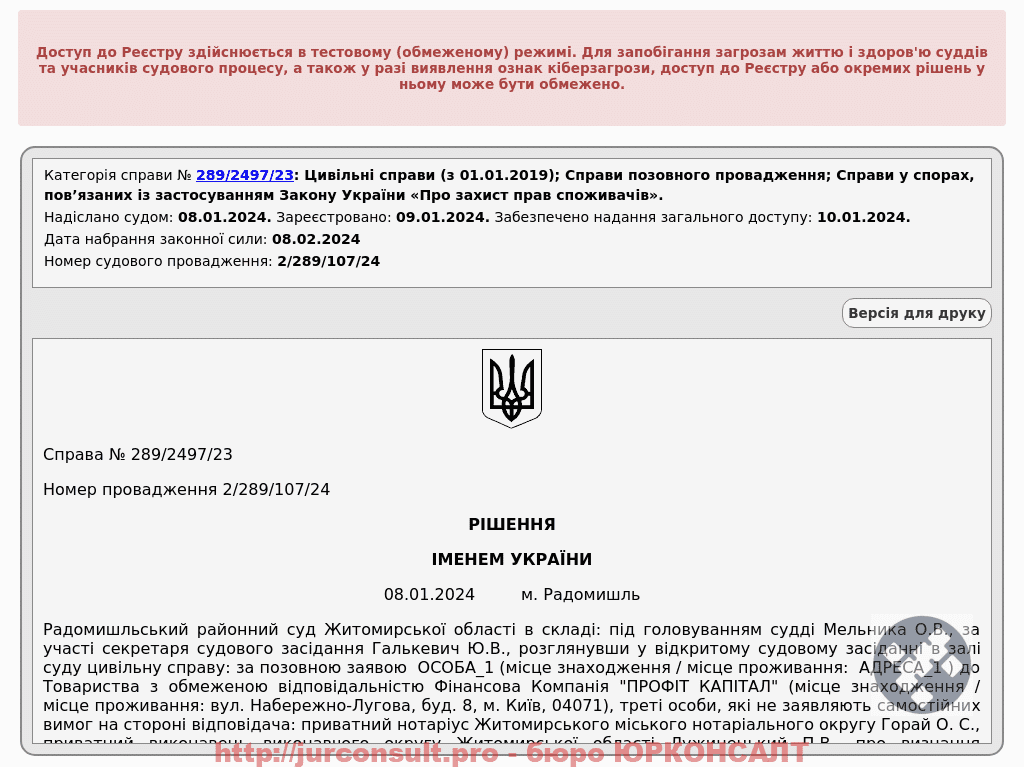 Скасували виконавчий напис на 14 тис. грн від ФК "ПРОФІТ КАПІТАЛ" за кредитом! Захистили клієнта від незаконного стягнення боргу.