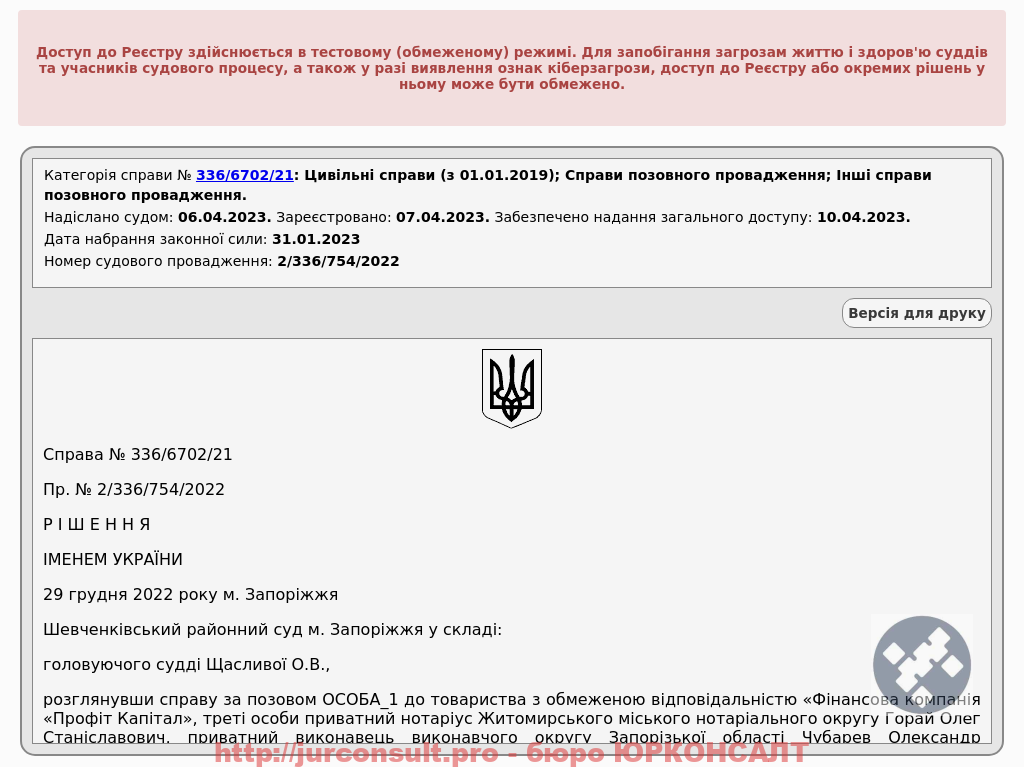 Домоглися визнання виконавчого напису Профіт Капітал на 22 тис. грн таким, що не підлягає виконанню! Врятували клієнта від незаконного кредитного стягнення та захистили його права.