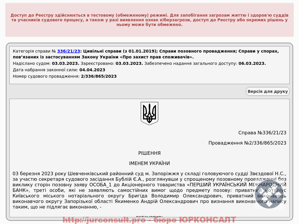 Клієнт звернувся через незаконний виконавчий напис по кредиту ПУМБ на 63 000 грн, який хотіли стягнути через нотаріуса.