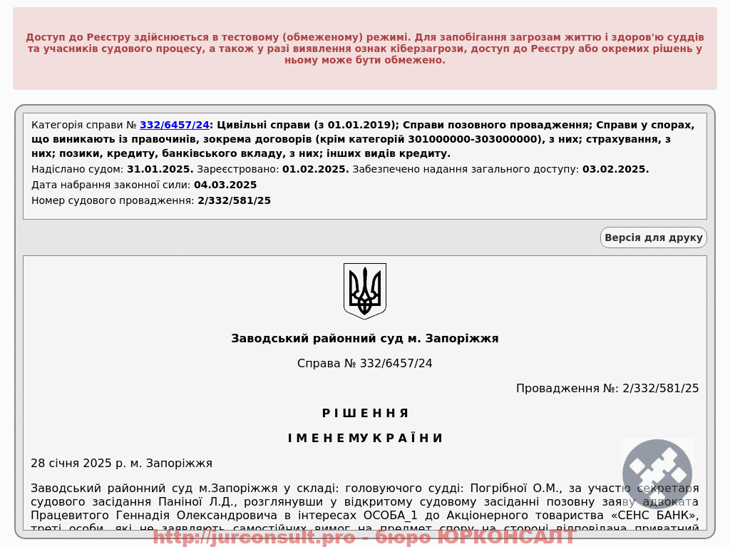Визнали виконавчий напис СЕНС Банку на 26 тисяч грн недійсним. Захистили клієнта від незаконного стягнення боргу та арешту рахунків!