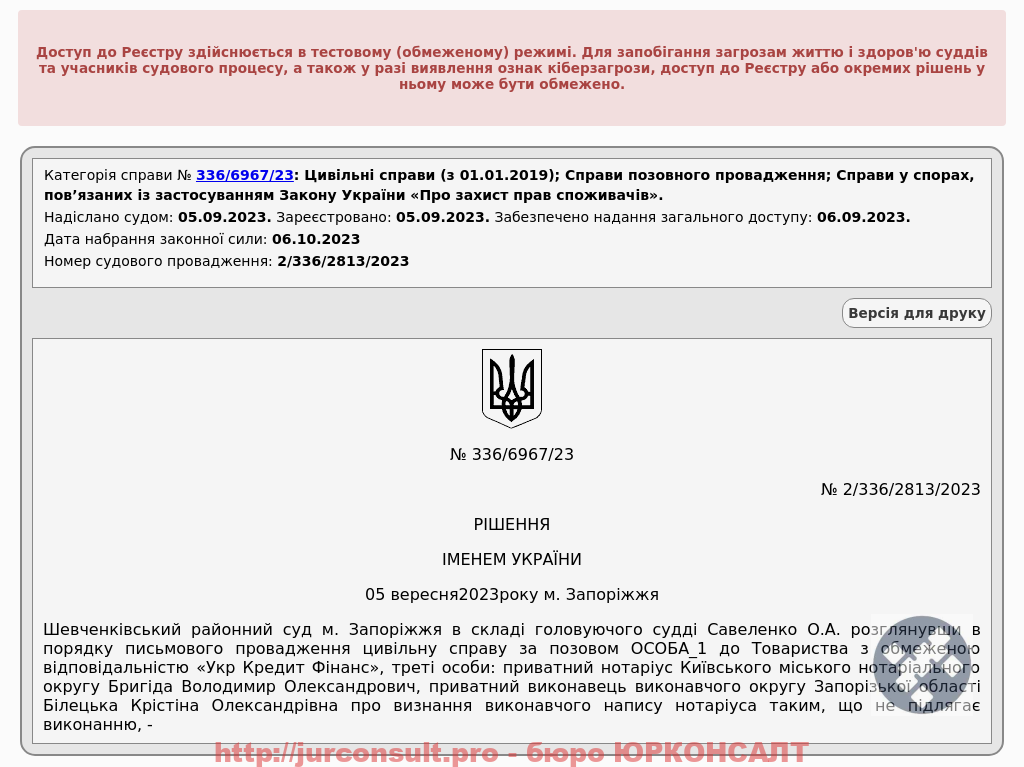Визнали виконавчий напис нотаріуса від Укр Кредит Фінанс на 21 тис. грн недійсним. Врятували клієнта від арешту рахунків і зарплати!