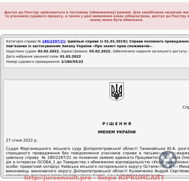 Визнали незаконним виконавчий напис ТОВ «Укрфіноперації» на 25 тисяч гривень! Клієнту повернуто судовий збір і частину витрат на адвоката.