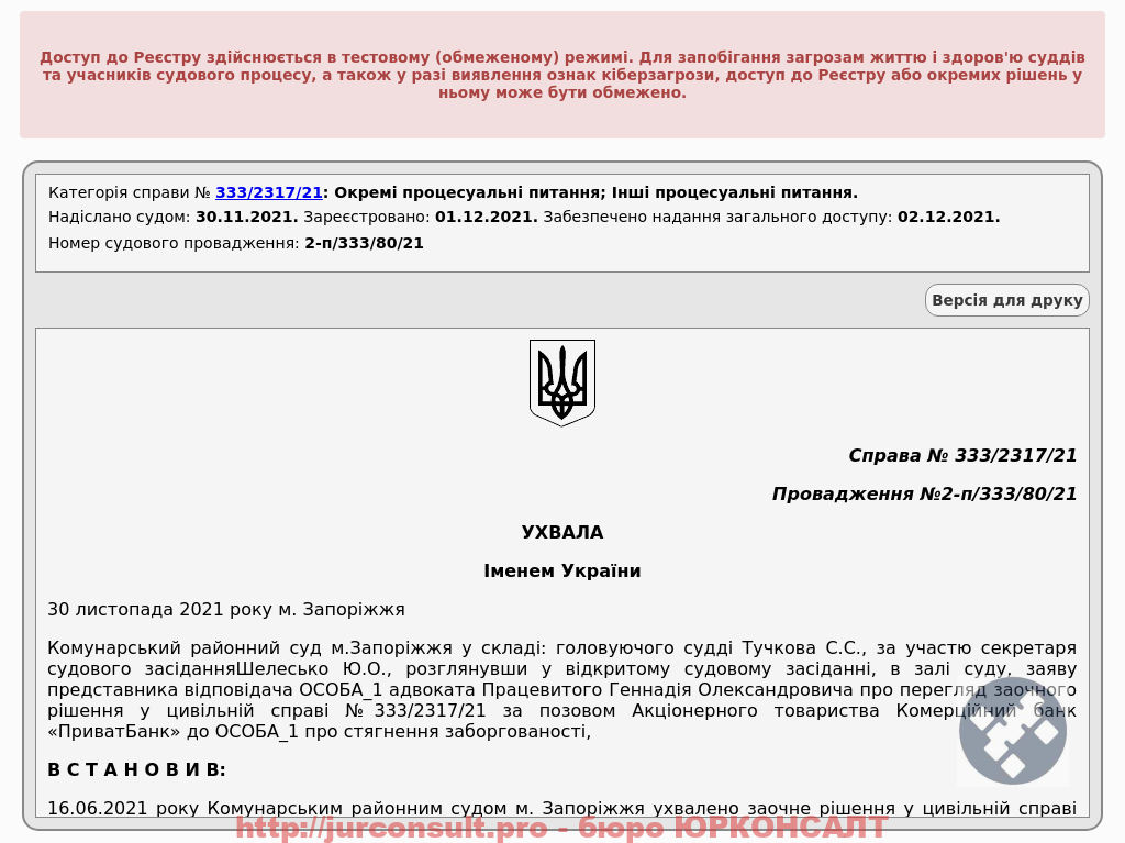 Домоглися скасування заочного рішення щодо боргу перед ПриватБанком на 33 000 грн. Відстояли право клієнта на справедливий розгляд справи!
