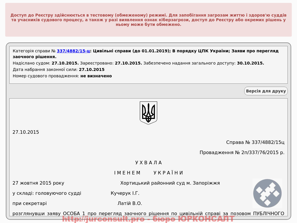 Клієнт звернувся через заочне рішення суду щодо стягнення боргу за кредитом Приватбанку на 360 тисяч грн.