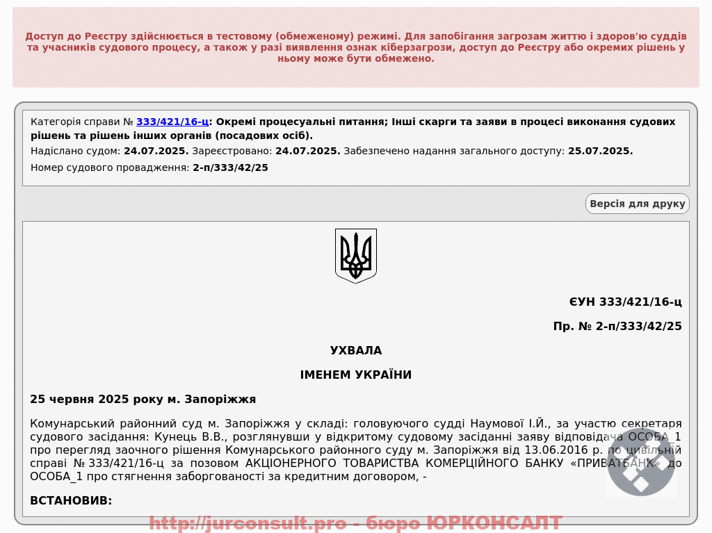 Клієнт дізнався про борг та рішення суду лише після відкриття виконавчого провадження і не міг захистити свої права.