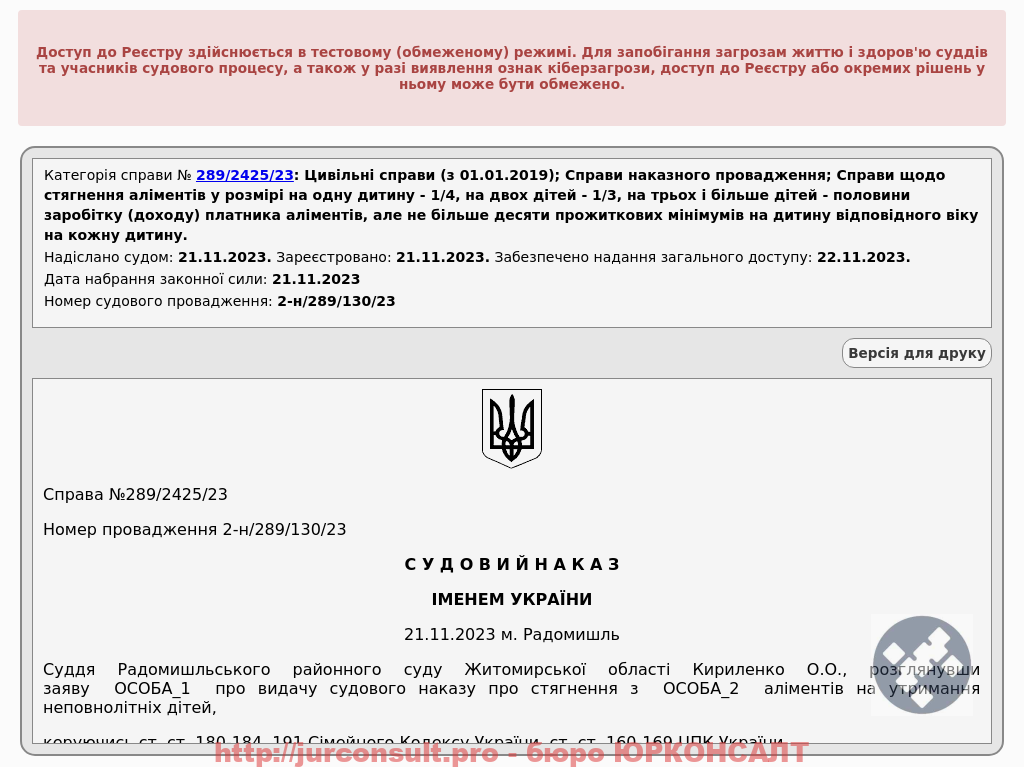 Домоглися видачі судового наказу на стягнення аліментів на двох дітей. Забезпечили виконання рішення та захист інтересів клієнта!