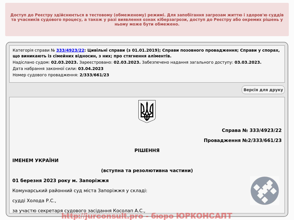 Натисніть на зображення, щоб перейти до Єдиного реєстру судових рішень: