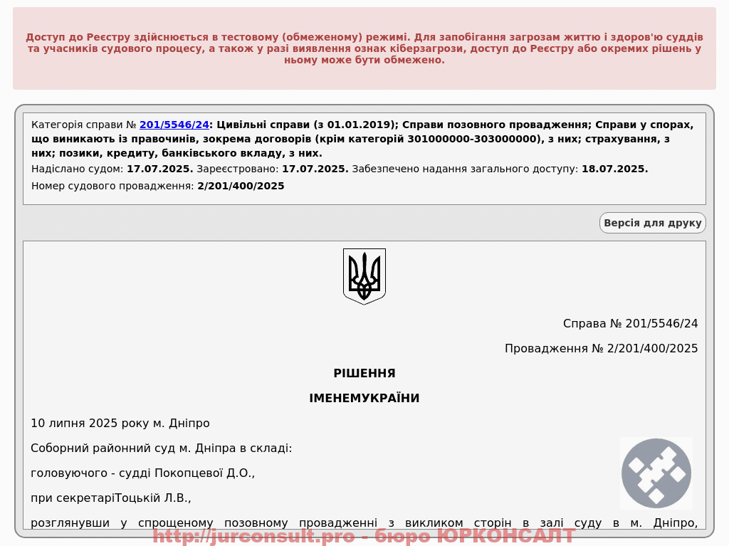 Визнали необґрунтованими вимоги кредитора! Захистили клієнта у справі щодо кредиту на понад 43 тисячі гривень.