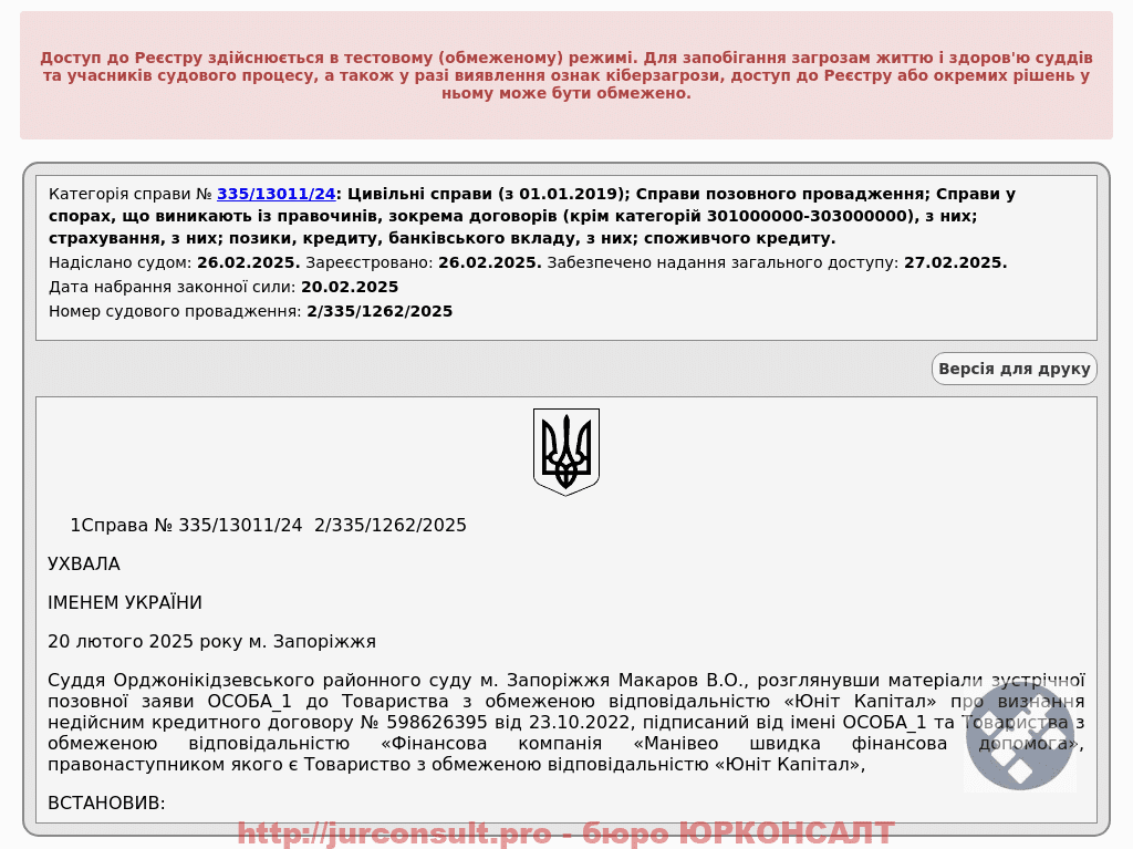Клієнта МФО «Манівео» та «Юніт Капітал» намагалися стягнути борг за кредитним договором. Клієнт оскаржував цей договір, доводячи його недійсність.