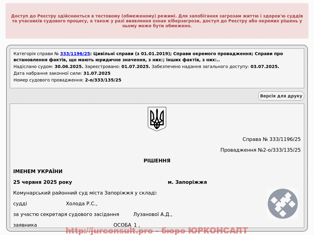 Суд визнав факт спільного проживання клієнта зі своїм тестем та тещею однією сім’єю з 2019 року по червень 2025 року.