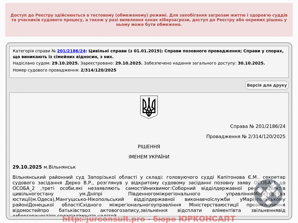Домоглися виключення відомостей про батьківство та звільнення клієнта від аліментів і боргу по ним.