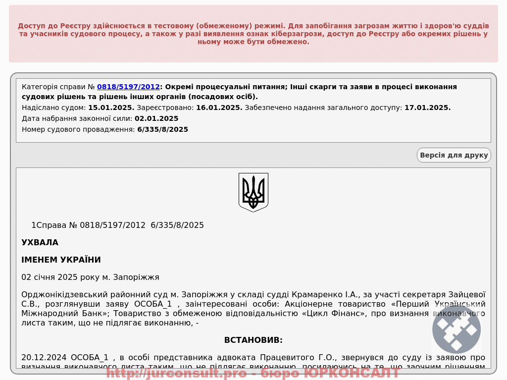 Успішно захистили клієнта від стягнення боргу за кредитом ПУМБ і Цикл Фінанс. Домоглися визнання виконавчого листа таким, що не підлягає виконанню!