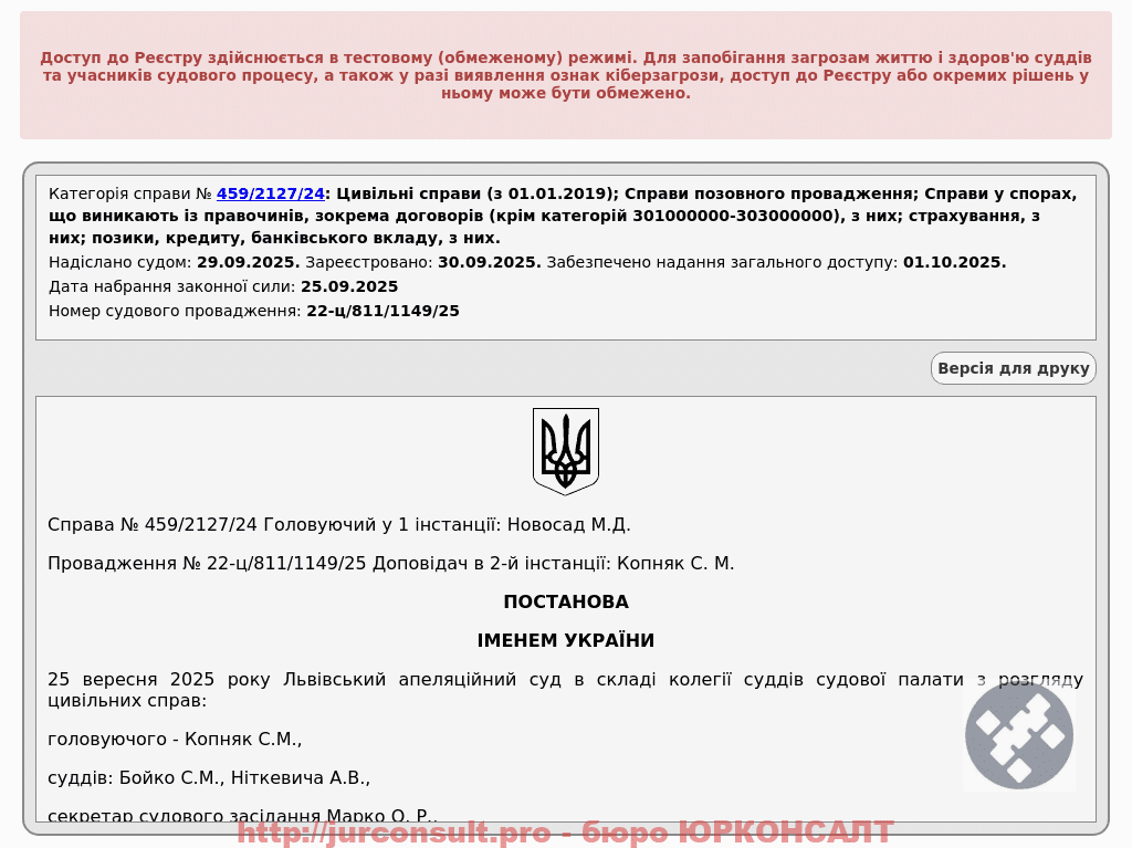 Клієнту загрожувало стягнення майже 95 тис. грн за кредитом та відсотками на користь АТ 'ТАСКОМБАНК'.