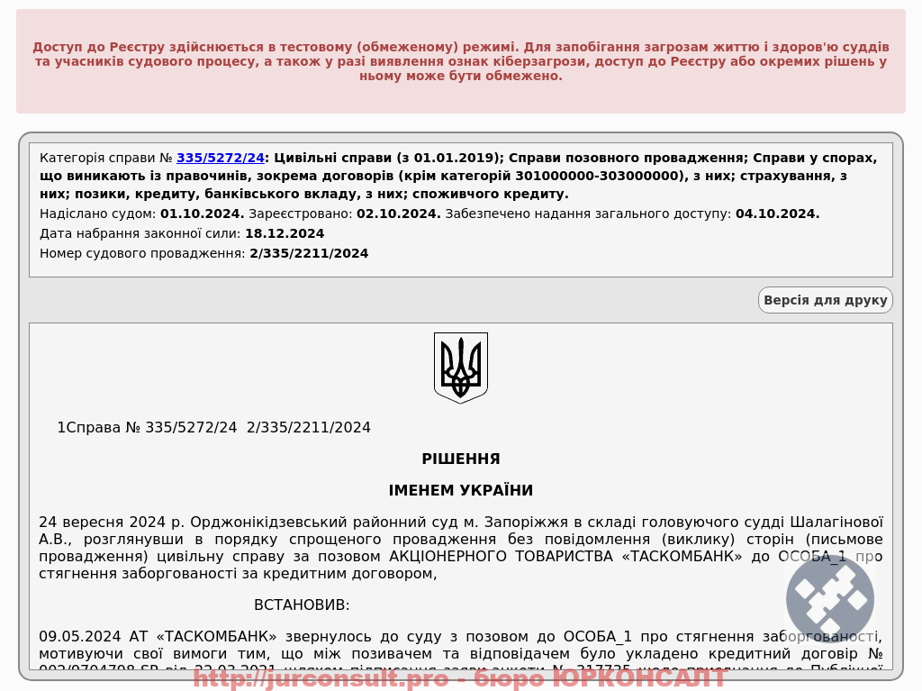 Довели у суді неправомірність нарахованих відсотків за кредитом та зменшили борг перед АТ «ТАСКОМБАНК» з 138 000 грн до 36 000 грн!