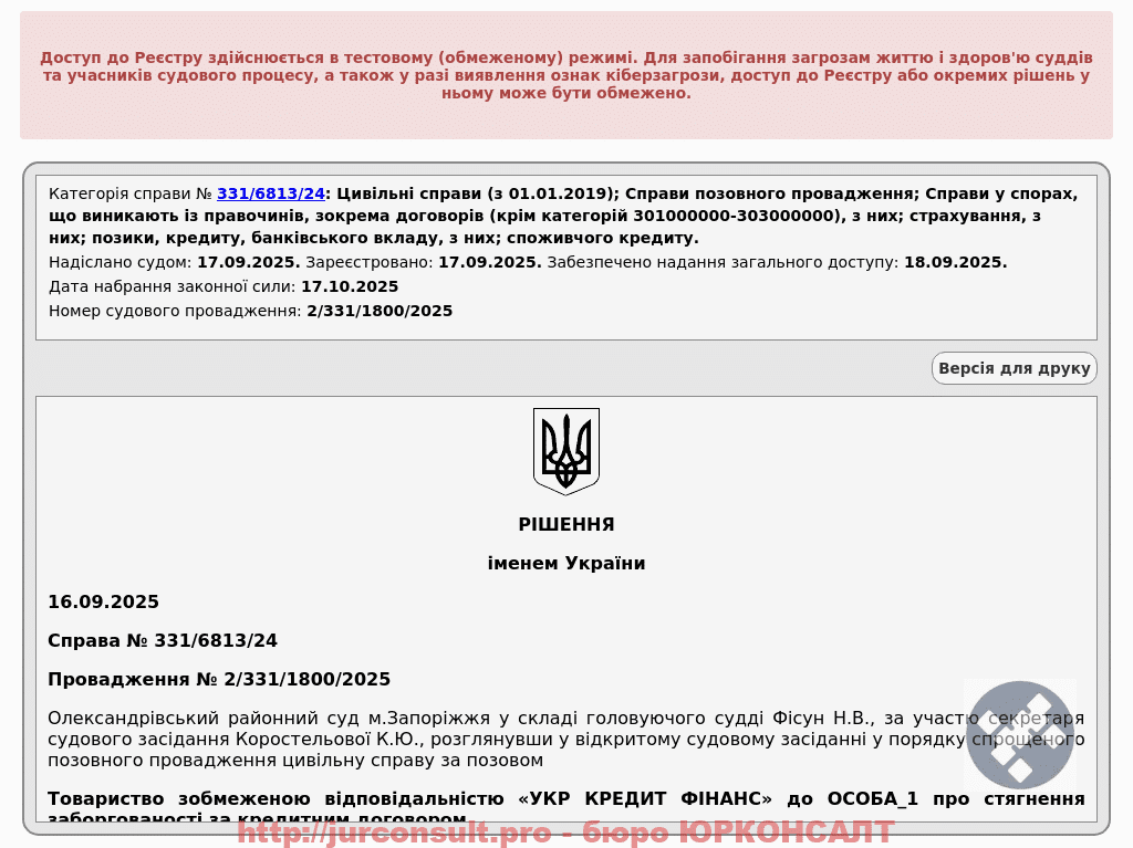 Домоглись перерахунку боргу у суді та зменшили вимоги УКР КРЕДИТ ФІНАНС з 83 500 грн до 62 100 грн! Зекономили клієнту понад 21 000 грн!