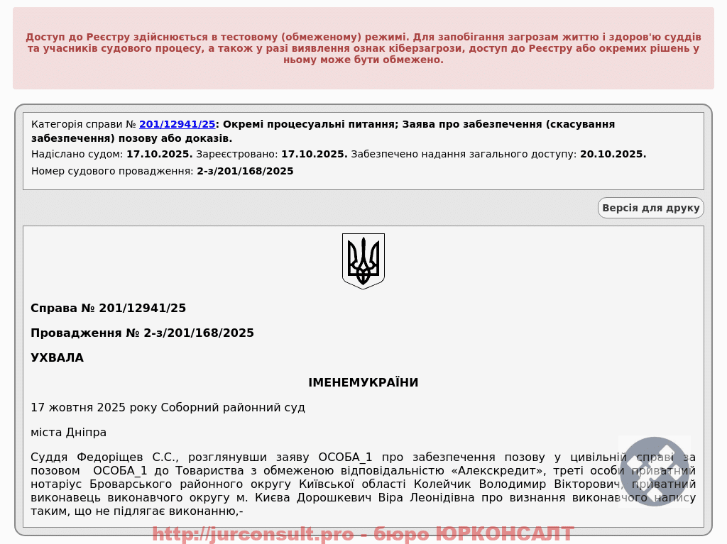 Захистили клієнта та зупинили стягнення кредитного боргу від МФО Alexcredit на 34 тисячі грн. Домоглися негайного зупинення виконавчого напису.