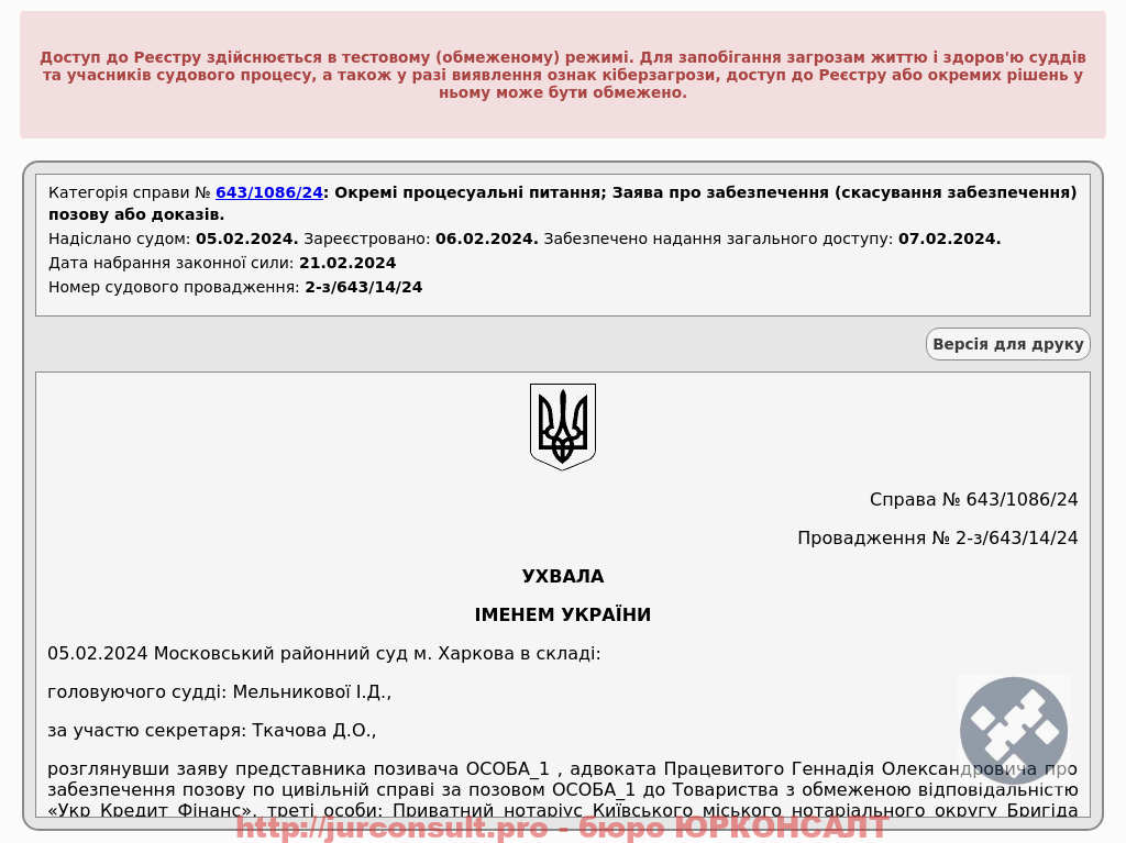 Домоглися ухвали суду про зупинення стягнення кредитного боргу на 34 000 грн від УкрКредитФінанс. Захистили клієнта від примусового вилучення коштів під час розгляду справи!
