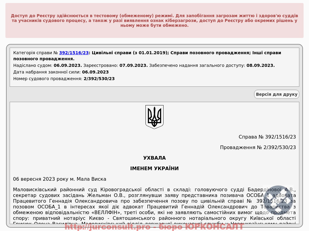 Клієнта намагались стягнути борг у розмірі 45 472 грн через виконавчий напис на користь ТОВ «Веллфін». Арештовано зарплатний рахунок клієнта.